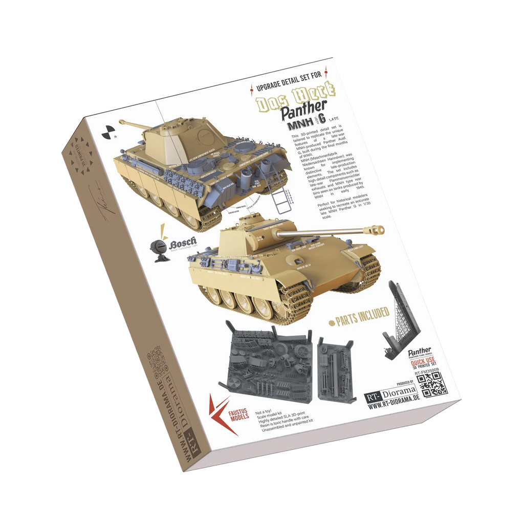 Designed to replace missing or simplified details on the DasWerk Panther G – nontheless, this set fits all modern Panther Ausf.G sets from common producers.