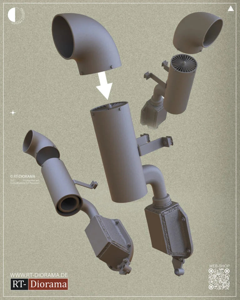 This 3D-printed detail set is designed for a late-war Jagdpanther G2 as produced by Maschinenfabrik Niedersachsen Hannover (MNH). The parts replicate distinctive MNH production features seen on vehicles manufactured in early 1945, including the modified exhaust layout and the specific late-war tool and bracket configurations. Ideal for experienced modelers seeking historical accuracy and fine detailing whilest saving a lot of time on fiddly parts.